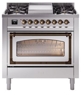 Introducing the new Nostalgie II 36" dual fuel range, a classic addition with a touch of innovation to any kitchen. This range feature sealed burners equipped with total black brass burner that has a non-stick nanotechnological coating, heavy cast iron grates, 3.5 cu. ft. total oven capacity and soft closing door system.Read More