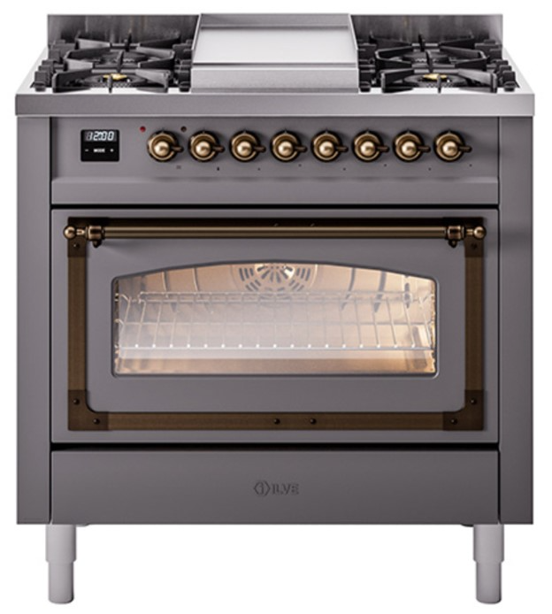 Introducing the new Nostalgie II 36" dual fuel range, a classic addition with a touch of innovation to any kitchen. This range feature sealed burners equipped with total black brass burner that has a non-stick nanotechnological coating, heavy cast iron grates, 3.5 cu. ft. total oven capacity and soft closing door system.Read More