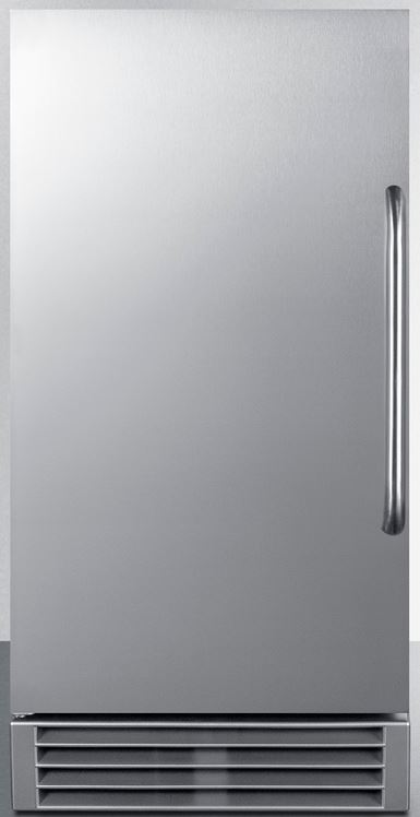 Summit's line of commercially approved icemakers are an attractive and durable solution to keeping a continuous supply of clear ice on hand in virtually any indoor or outdoor kitchen space. ENERGY STAR certified for commercial use, BIM47OS features a complete stainless steel exterior specially built to hold up to the outdoor elements. The front-breathing design allows built-in use under counters, while the fully finished stainless steel cabinet also allows freestanding use, with a sealed back for added outdoor protection and easier cleanup. The user-reversible stainless steel door includes a curved towel bar handle for a professional look. NOTE: this unit ships with a left hand door swing that can be reversed before delivery (add suffix RHD) or at home.Read More
