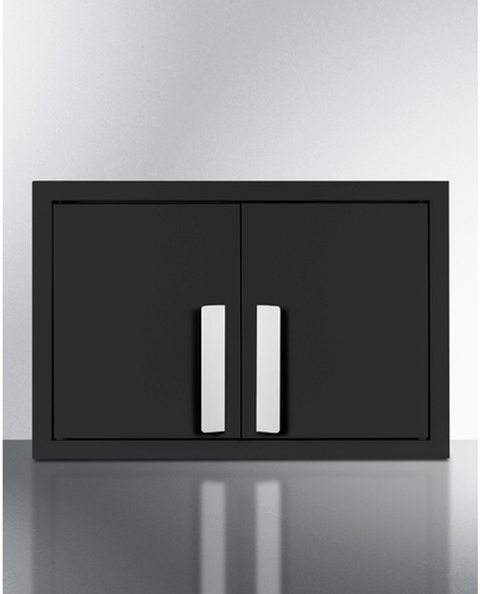 Sized at 18" wide and 12" deep, the CAB18SHORTBLK is perfect for smaller kitchen spaces. Constructed from powder-coated metal, it comes in a jet black finish with angled blade-style handles in brushed stainless steel for a modern look. The french door design makes it easy to store and remove contents as needed. Inside, two removable shelves allow you to accommodate a variety of sizes. The cabinet ships fully assembled with a mounting bracket and all the equipment needed for proper installation.