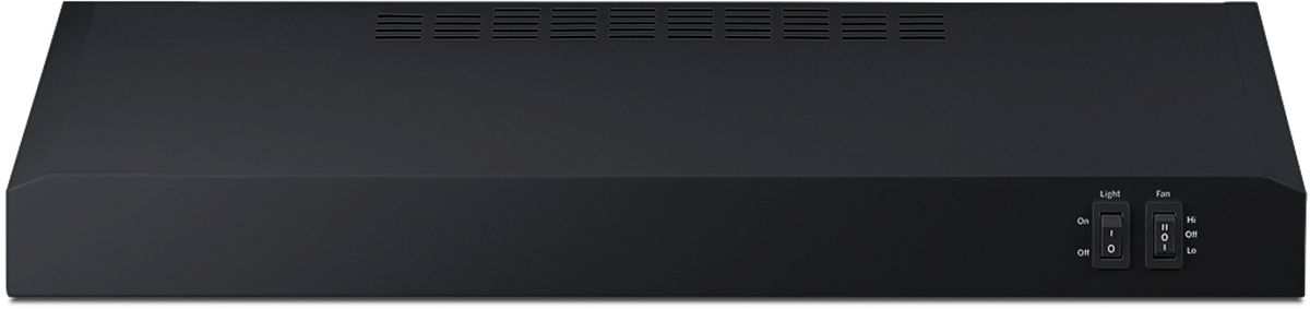 24 inch wide under cabinet convertible range hood for ducted or ductless use in black, made in North AmericaRead More