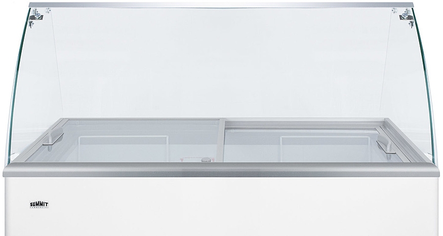 NOVAGDC35KIT lets you convert Summit Commercial NOVA35 ice cream freezer into an attractive dipping cabinet. This kit includes two side glass walls and a curved front glass piece, with an aluminum top to serve as a durable work surface.