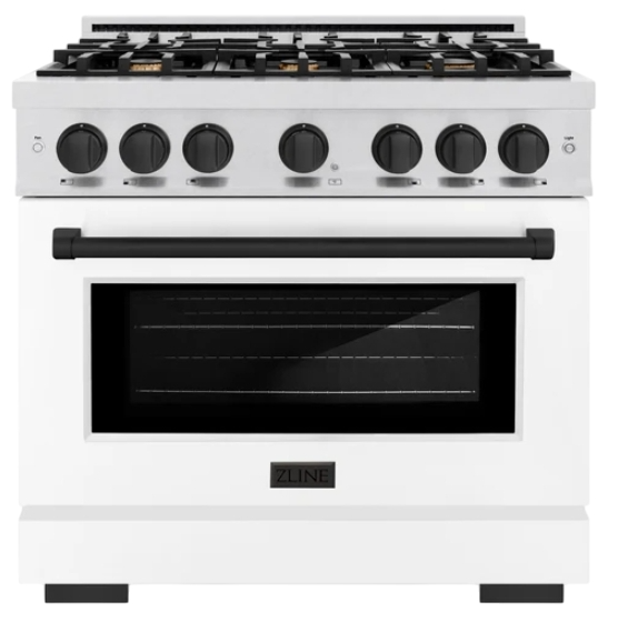 Luxury isn’t meant to be left desired—it’s meant to be attainable. The ZLINE Autograph Edition 36 in. 5.2 cu. ft. Select Dual Fuel Range with 6 Burner Gas Cooktop and Electric Convection Oven in Satin Stainless Steel with White Matte Door and Matte Black Accents (HDRSZ-WM-36-MB) combines the elegance of a hand-finished porcelain gas cooktop with 6 Italian-made auto-reignition burners, an electric convection oven with an energy-efficient cooling fan to ensure quiet operation, a beautiful white matte door with a Horizon window design, and stunning matte black and handle allowing you to master every meal. With a modern, timeless style and refined functionality, ZLINE Select Dual Fuel Ranges are masterfully crafted to deliver an elevated culinary experience.Read More